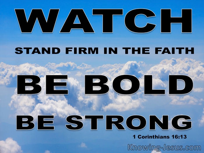 13 Be alert. Continue strong in the faith. Have courage, and be strong.